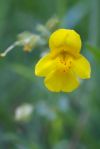 True to its name, this cheerful yellow flower is most often found growing on moist hillsides, along streambanks, and in other wet places. With reddish spots displayed inside it’s splayed lower lip, Mimulus guttatus (also called common monkey flower) is easy to spot. Its tubular yellow flowers are folded at their opening, like the mouth of a sock puppet. Though joined at the base, they split at their ends into five or six petal-like lobes (depending on whether or not the central lower petal is divided). The plant itself is often dinky (as few as 2 inches high) but it grows up to knee height – three feet if it’s really happy.