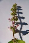 Rough hedge nettle is widespread in the area, and hedge nettles in general are easy to recognize. Though they don’t have the typical smell, hedge nettles are in the mint family! Mints are often hairy and smelly (like some rugged botanist-types that I know?!) and they have a tubular flower that usually is distinctly two-lipped. For the hedge nettles this is certainly the case. But the real giveaway for this family is that they have a square stem. Just roll it between your fingers to see what this means – all mint stems are distinctly four-sided (see the stem close-up below). There are other families that have square stems, but the many local species in the mint family (Lamiaceae) are by far the most common.