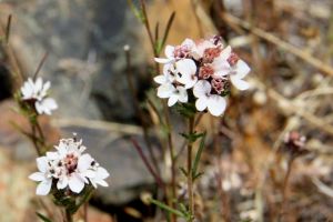 Like dried flowers in a storebought display, California everlasting has crispy, white, straw-like petals. But actually these petals are bracts – you have to look close, and at the right time, to see the real (yellow) petals peeking through from the flower inside. When done flowering, the bracts open wide around a dandelion-like puff of seeds.