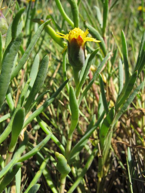 Even though Jaumea stands out as one of the comparatively few plants that grow in salt marshes, there’s not much information on this little plant. As far as I can tell, it’s not edible and hasn’t got any significant cultural or historical uses. It’s just an upstanding citizen that likes to grow at the upper edge of the tide, quietly going about its business of flowering and photosynthesizing.