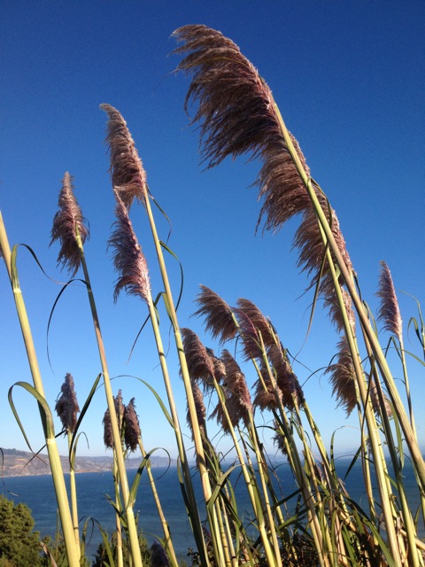 There are actually two species that are commonly called pampas grass–Cortaderia jubata and C. selloana. Both thrive along the coast, but jubata (sometimes also called jubata grass) is restricted to coastal areas, while selloana also grows farther inland. Jubata plumes are purple or lilac, tending towards white as they age. This species can also be distinguished from its cousin because it holds its plumes quite high above the mound of leaves.