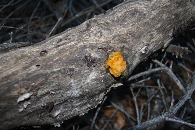 Usually I’ve seen witch’s butter growing in moist forests; the one described above is a stretch of the International trail, and birds actually sing there quite often… Though you can find a silent moment if you try.