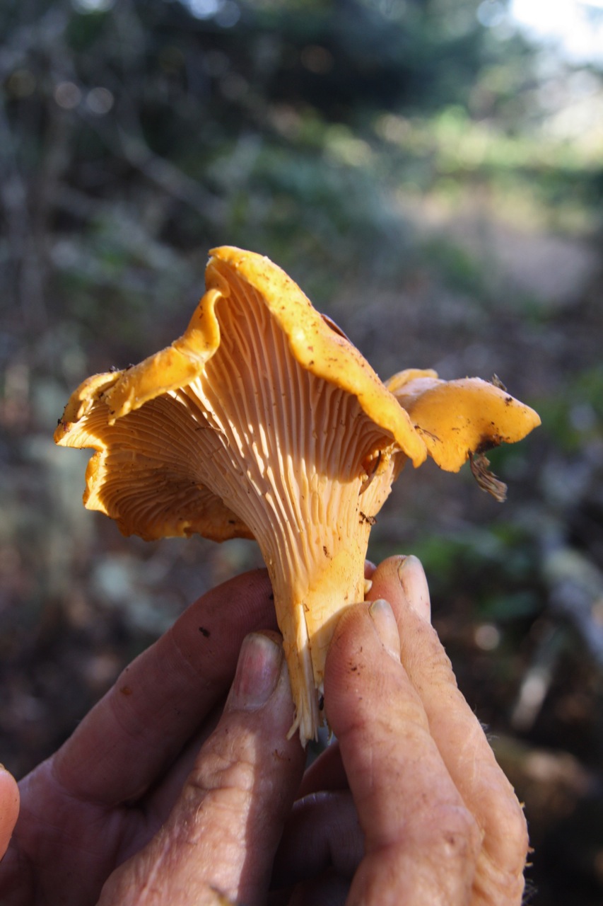 I DO NOT recommend eating chanterelles (or any other mushroom) unless you’re absolutely sure of what they are. But. It is worth finding a mentor or joining a mycology outing to learn this stuff. They have a unique, mild flavor and a meaty texture and are absolutely delicious when sautéed with olive oil and garlic. Last night we had them over pasta, sautéed with basil, sweet garden tomatoes, and bacon. It was heavenly.
