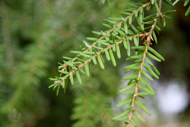 Continuing yesterday’s theme–here is an iconic tree of the Pacific Northwest. Western Hemock (Tsuga heterophylla) is a tall, straight-trunked tree that can be identified at a distance by the way its tip droops sideways rather than standing upright. Up close, look for short, round-tipped needles of irregular length (5 to 20 m) that splay out from the twig in several directions. Ain’t it adorable!!