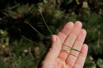 Monterey pine (Pinus radiata) has three bundled needles just like coulter pine, described yesterday. But the scales of its fat, vaguely egg-shaped cone are blunt rather than sharp; and its needles are noticeably shorter.