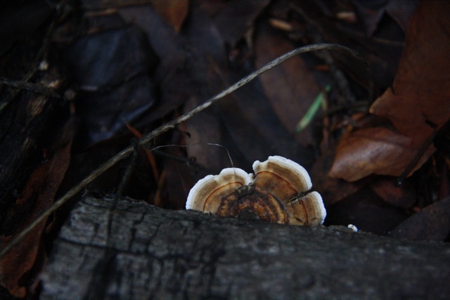 In celebration of turkey day, here is a turkey tail fungus. I saw this beautiful little fan-shaped fungus on a dead tan oak tree, banded with a rainbow of oranges and whites. It really does look quite a lot like the spread fan of a turkey’s tail.