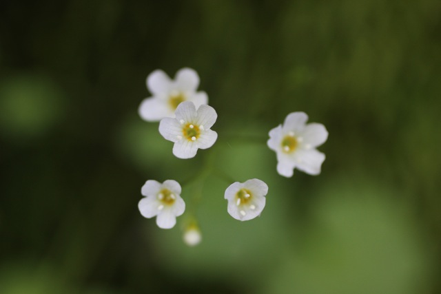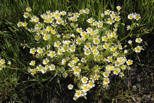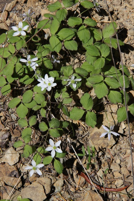 For much of the year, these perennial lilies simply look like a pile of green, tongue-shaped leaves that sit unchanging on the forest floor. But in the springtime, they reward hikers with a dense cluster of brilliantly pink flowers atop a leafless stalk. There are masses of them along the Steep Ravine trail; when I was there a week ago the flowers looked just about ready to bloom–they are sure to be a lovely sight when they do. Later in the season, the flowers will be replaced by glossy blue-black berries that look like a stylized starburst, exploding from a single point on the end of slim pedicels.