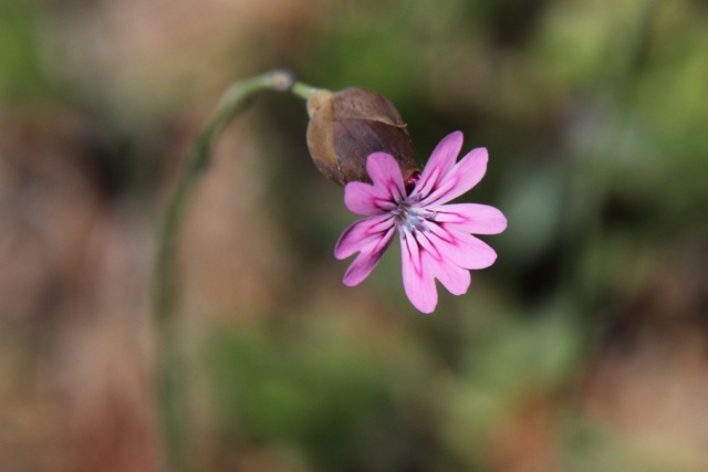 Rosy iceplant has a very different look from the much more common (and invasive) iceplant, Carpobrotus, though it is in the same family. Common iceplant has large wedge-shaped leaves the size of crisp green french-fries, and the flowers are much larger. The little leaves of rosy iceplant are only about 1cm long.
