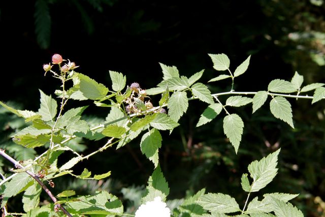 There are several different kinds of wild roses in California, and they all look fairly similar. The California rose (according to the Marin Flora) has the brown remains of its sepals at the tip of its ripe hips, and also tiny hairs visible on the stems of its leaves. It grows in full sun and partial shade, and in both wet and dry areas.