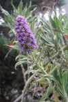 You’ll see these towering purple spikes looming from road cuts and clifftops. This is pride of Madeira, or Echium candicans. It’s a common sight – especially in more coastal areas. It grows to more than seven feet tall, and is very striking with its gray-green leaves and massive heads of flowers (easily over a foot long).